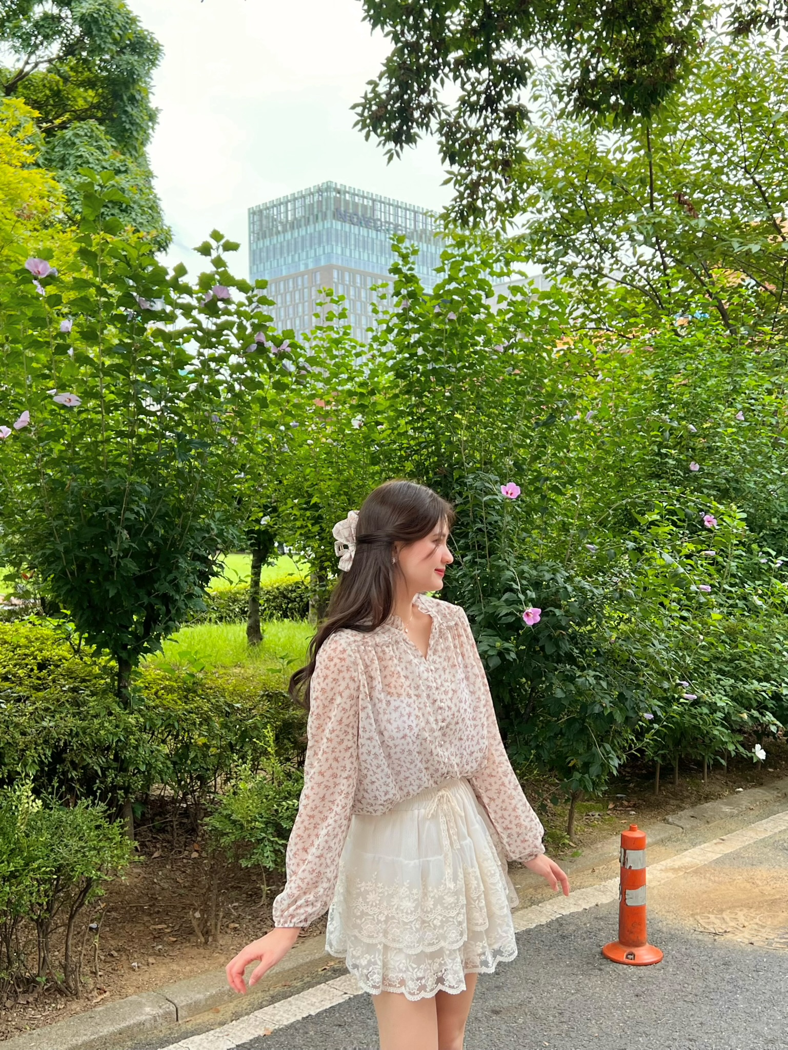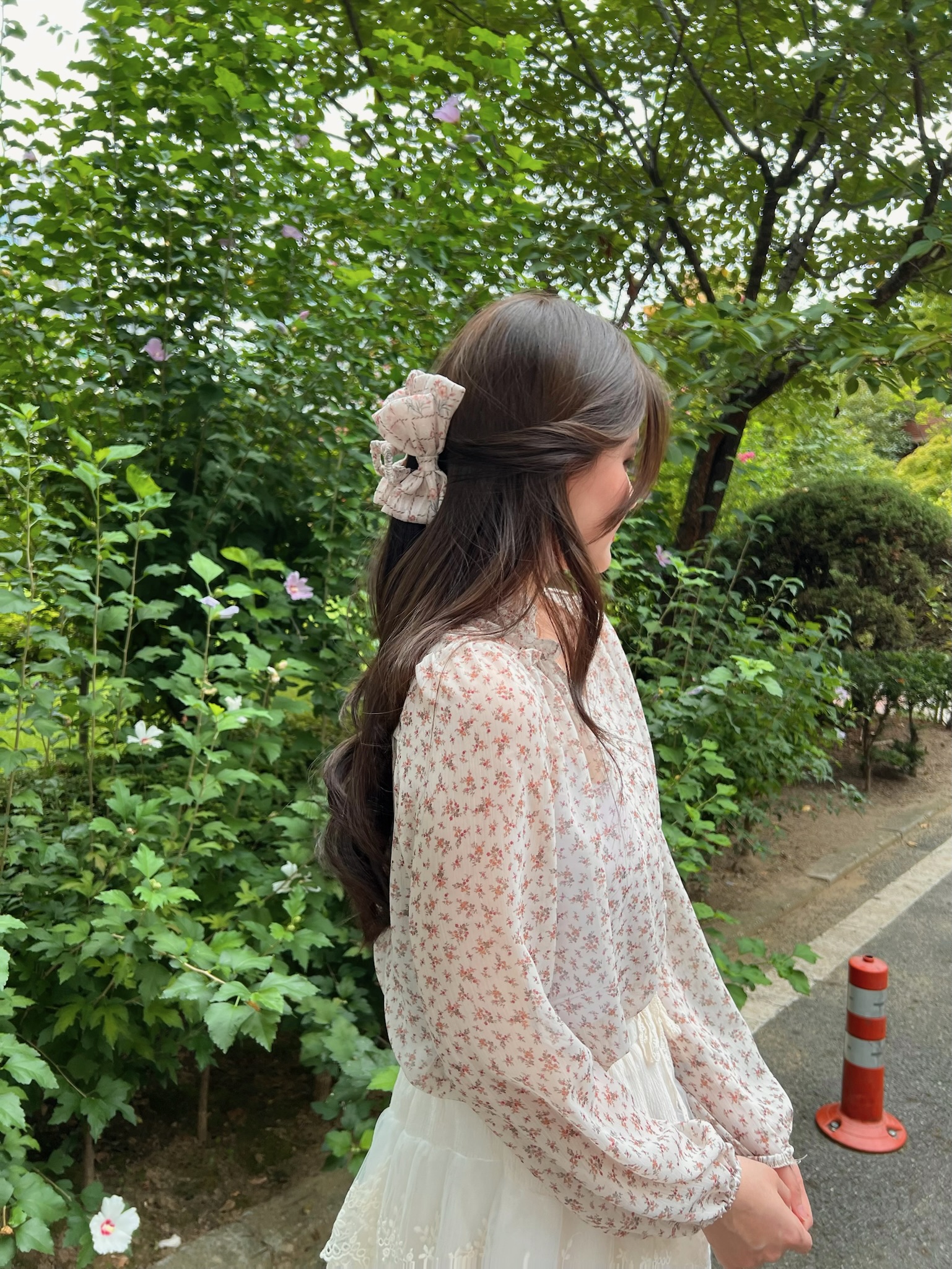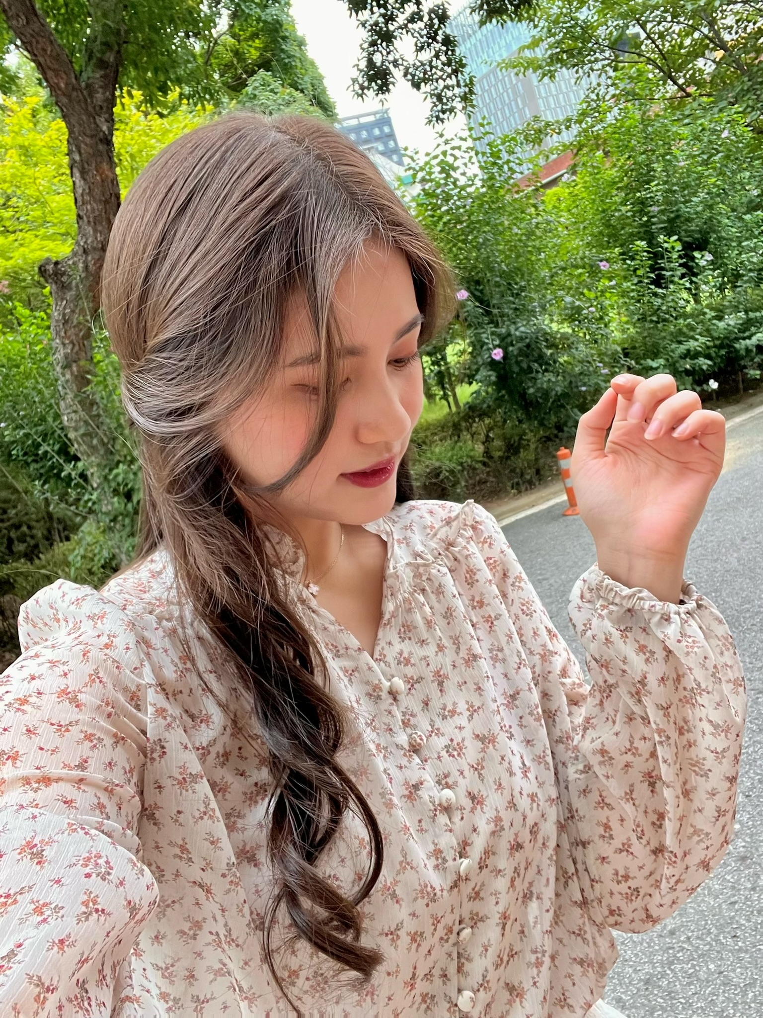 Autumnal petals blouse with button