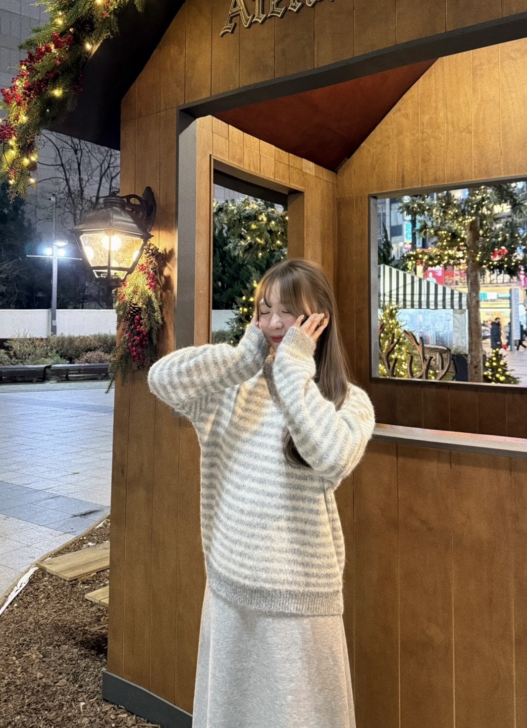 Grey Sparkle-Knit Sweater With Horizontal Stripes